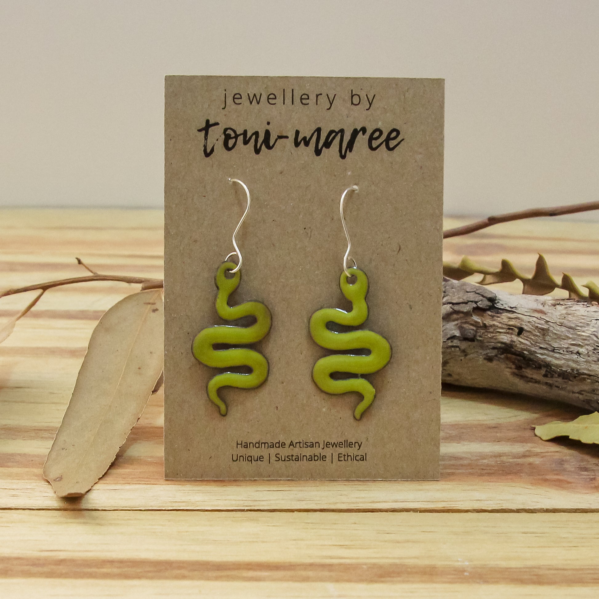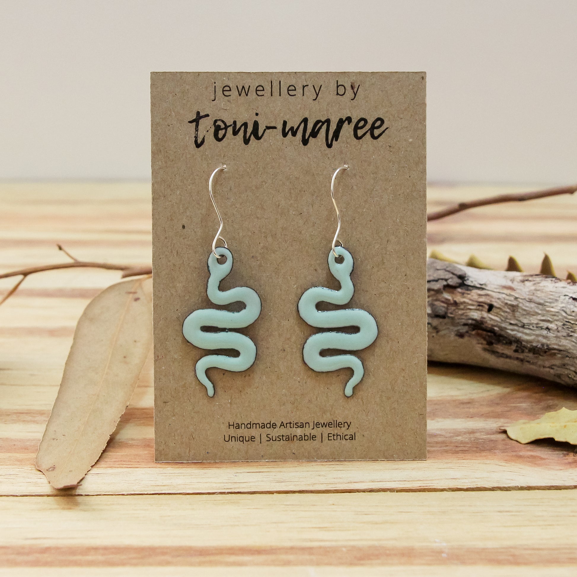 My Snake drop earrings are super cute and the perfect accessory for reptile lovers! The earrings feature glossy vitreous enamel (powdered glass) snake silhouettes. All earrings have glossy blue-black enamel backs. A beautiful gift or addition to your jewellery collection.