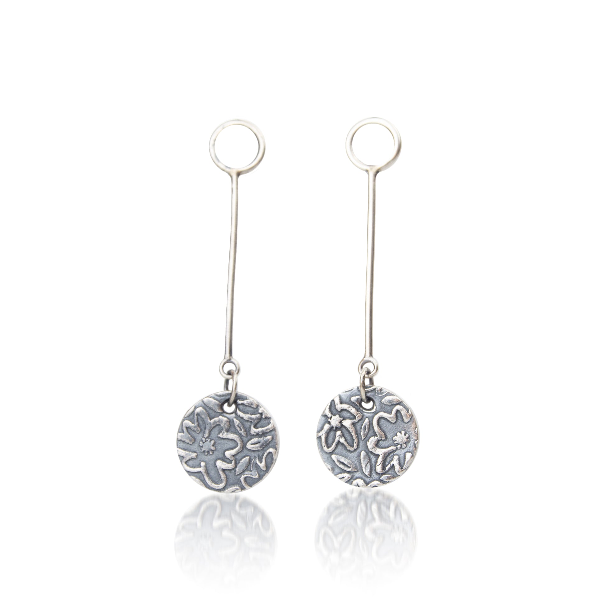 Tiny gardens for your ears - these fine silver studs are embossed with delicate floral patterns, capturing the quiet beauty of nature in bloom. Each pair is handmade with care from eco-friendly materials, bringing a touch of magic to both everyday wear and special moments.