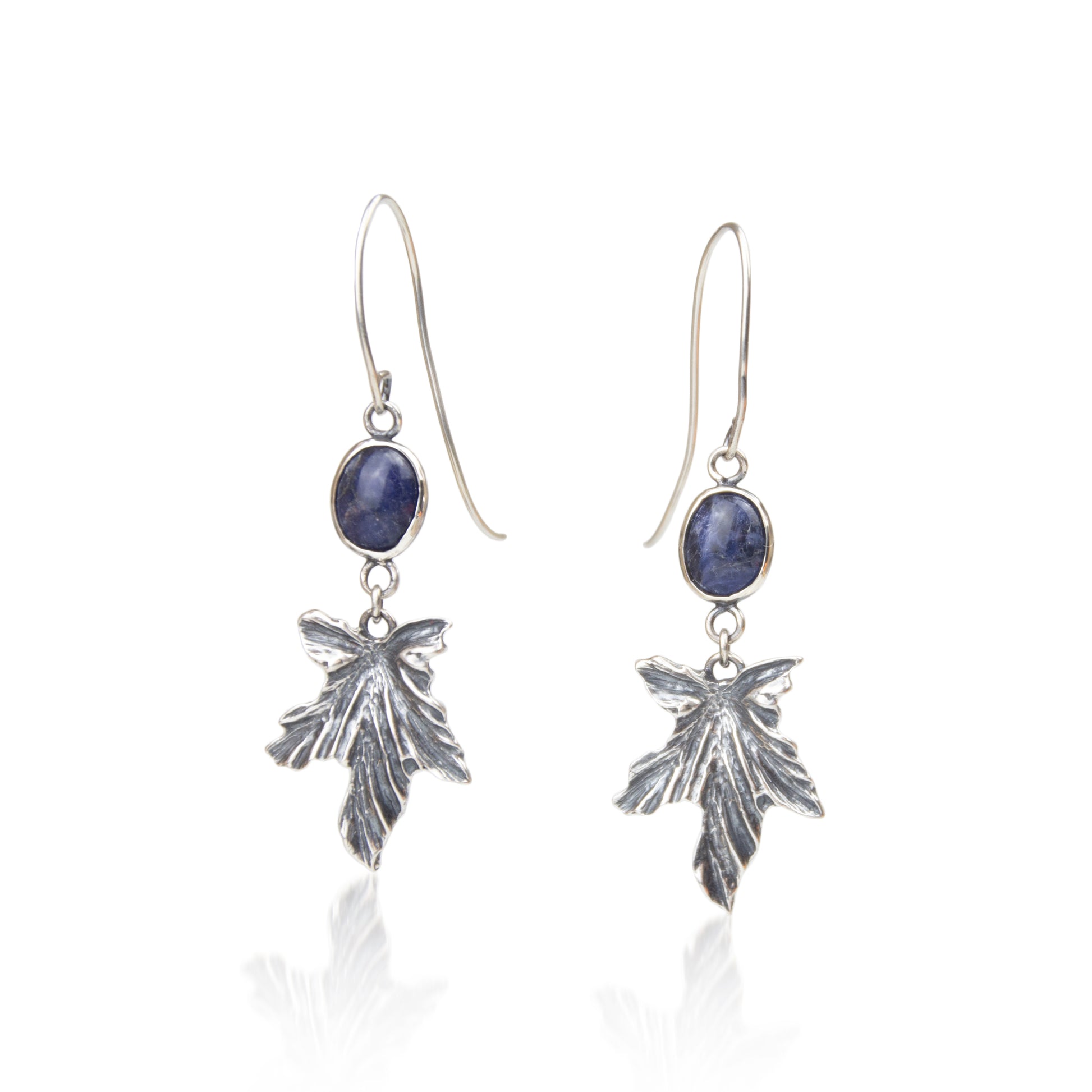 Adorning each earring is a striking piece of dark blue Sodalite, a natural gemstone known for its captivating hue and calming properties. The choice of Sodalite not only adds a splash of celestial blue to the design but also ensures that each earring is as unique as its wearer, with the gemstone's natural variations making every pair one-of-a-kind.