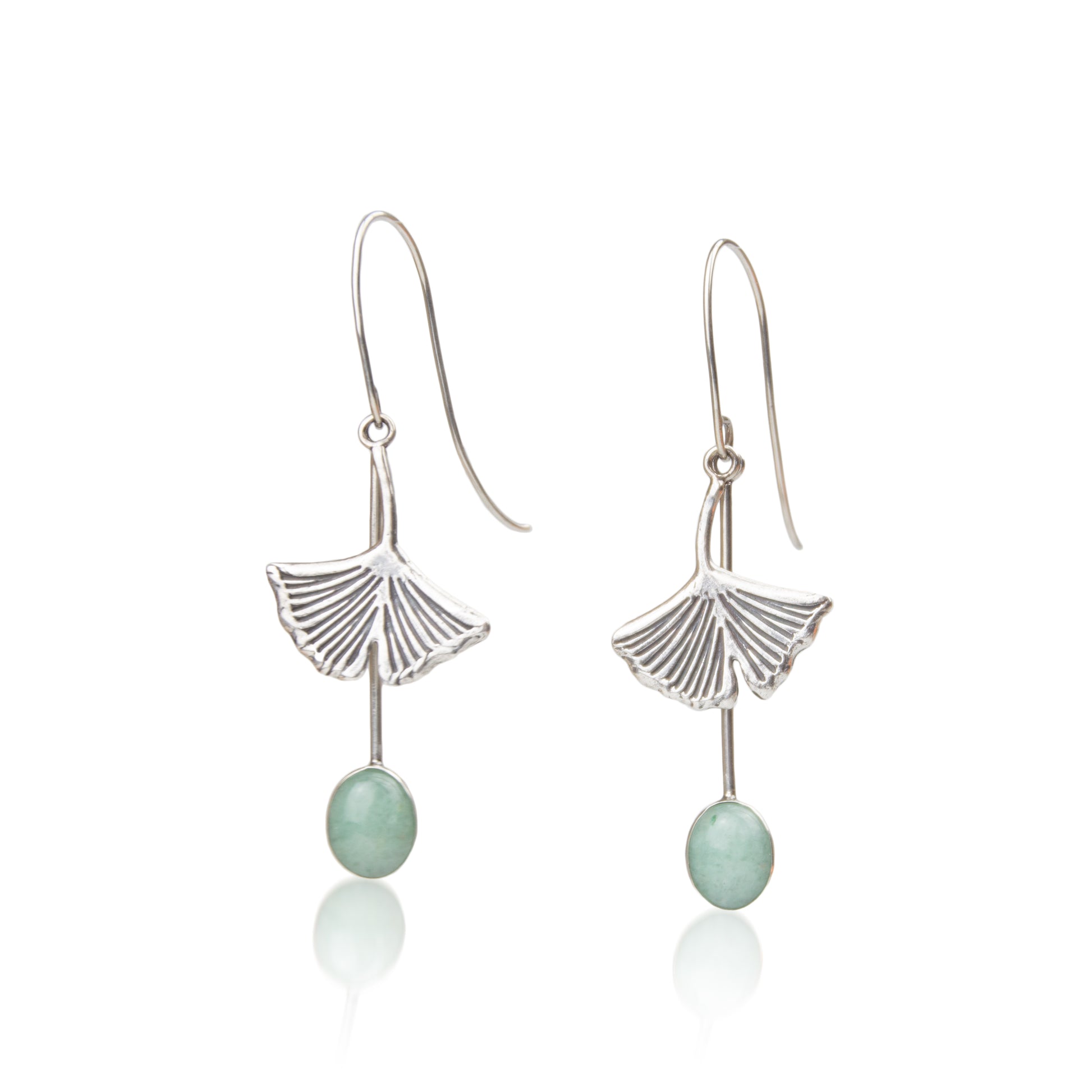My exquisite 999 Fine Silver Gingko Leaf Drop Earrings with natural gemstone blend nature's elegance and artisan craftsmanship. These ecoconscious and ethically designed earrings feature delicately crafted fine silver Gingko leaves, symbolizing resilience and peace, enhanced by the detailed texture that captures the intricate beauty of the Gingko tree. Complementing this is a natural untreated gemstone that gracefully dangles behind each leaf, adding a subtle splash of colour and enhancing the organic appeal. The movement of the gemstone creates a captivating interplay of light and shadow, making these earrings perfect for any occasion. Each pair is unique, handmade to ensure individuality and a testament to ecoconscious jewellery making. Ideal for those who cherish nature-inspired design and ethical craftsmanship, these earrings are a versatile addition to any collection, offering elegance and a story with every wear.